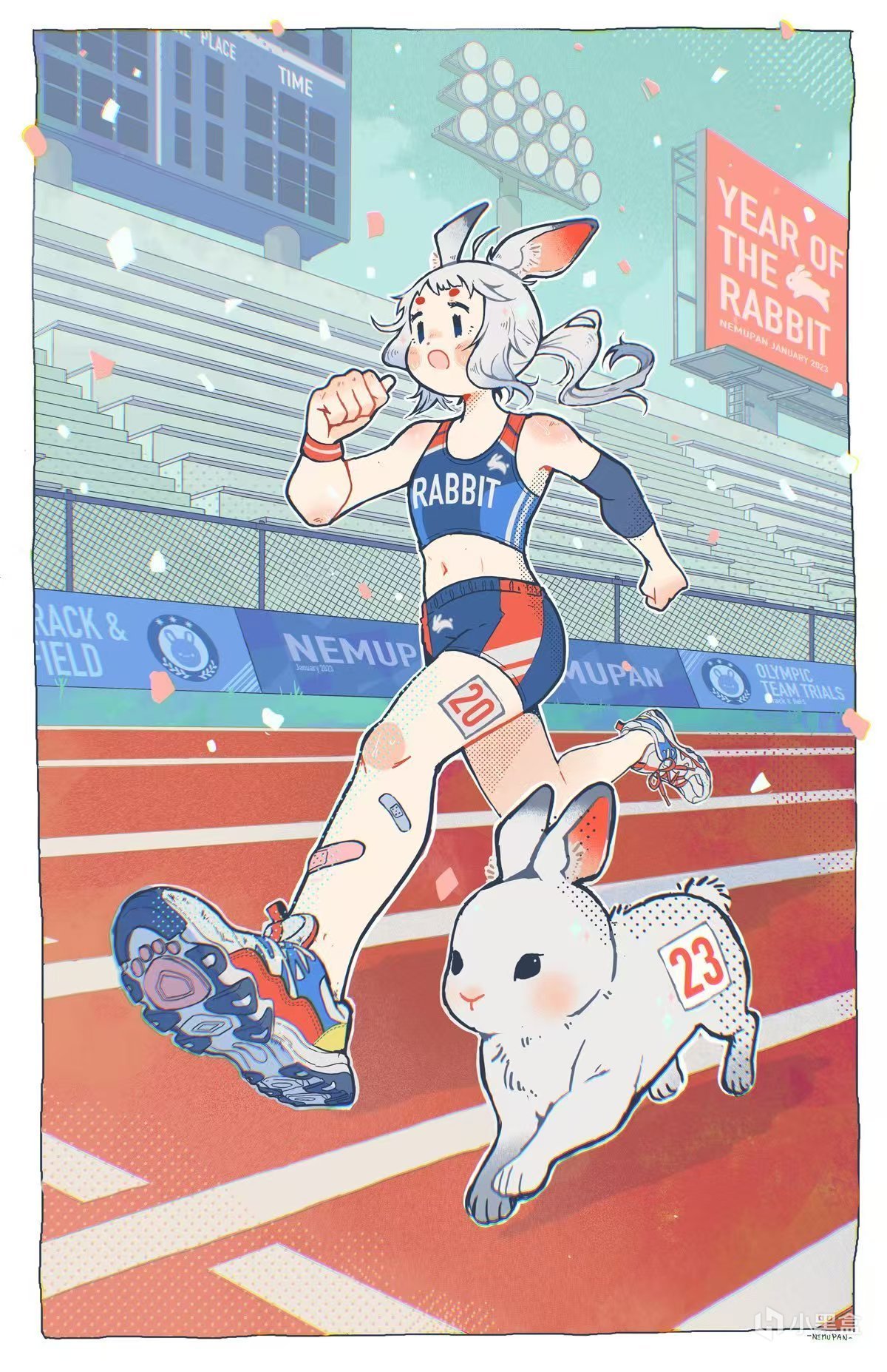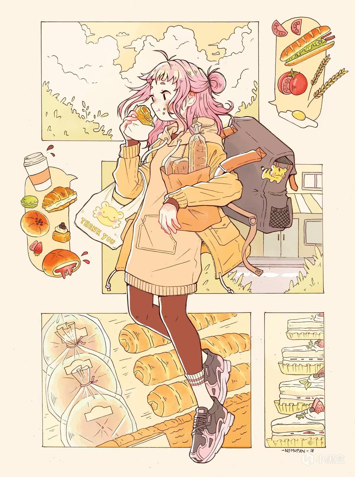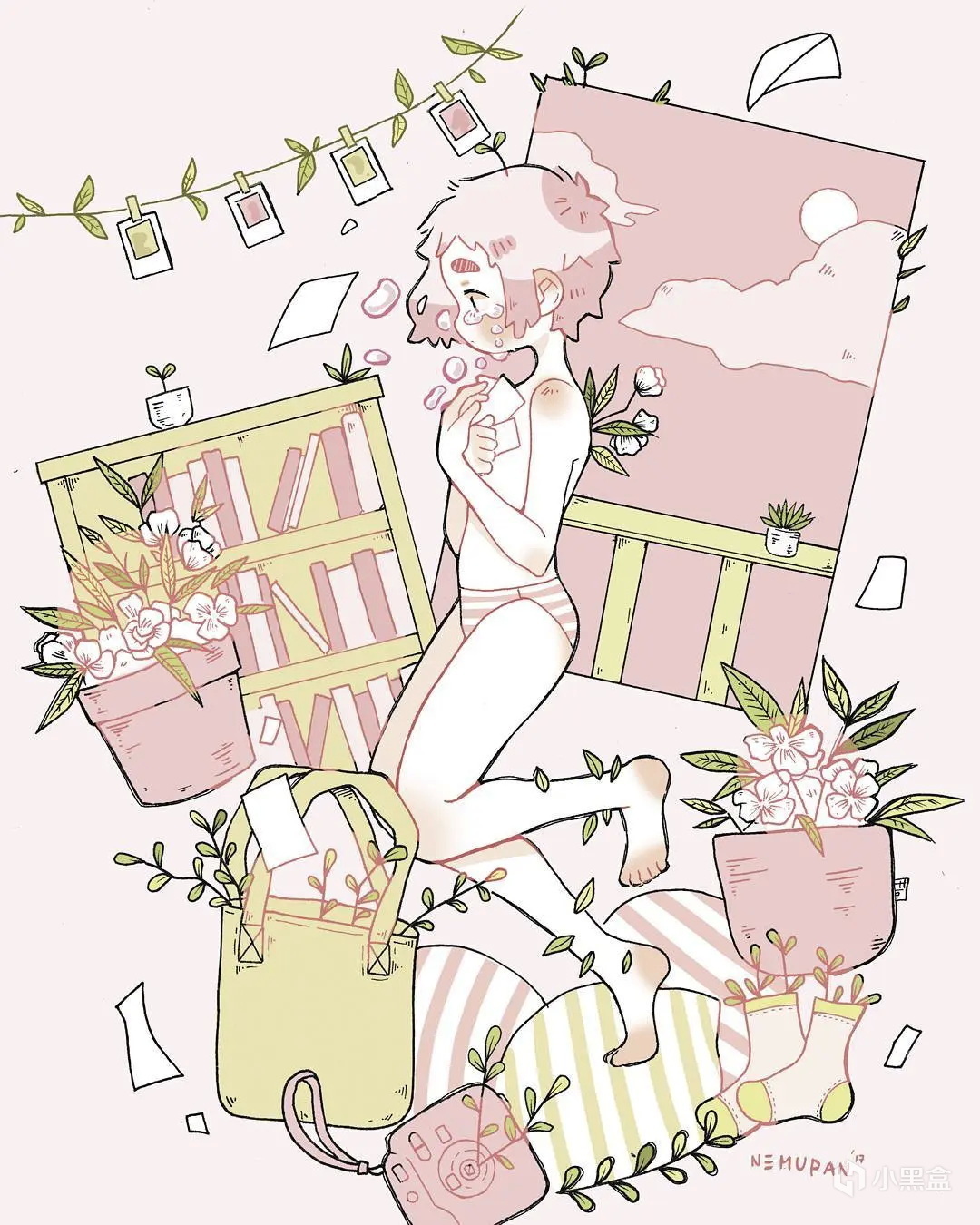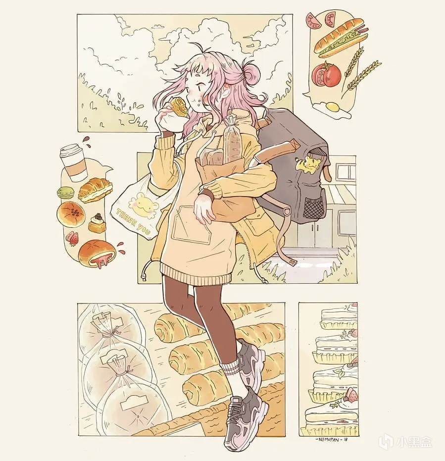 NEMUPAN的人物畫配色簡單卻恰到好處,乾淨利落,粉毛妹子造型可愛,給人一種撲面而來的清新感和......說不上來,就是非常有“生命力”(濃眉、很陽光的眼神、粉撲撲的小臉蛋、運動後留下的創可貼),無論主題是妹子在幹什麼,都給人一種元氣滿滿的感覺!