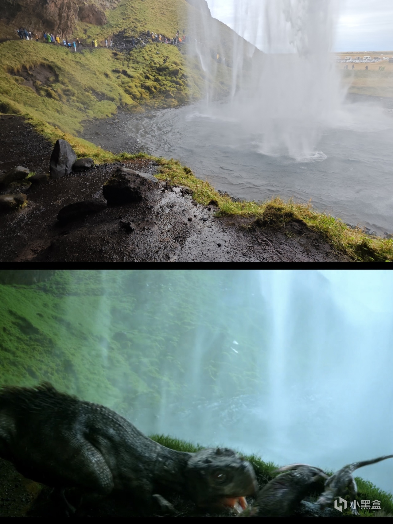 這個瀑布本身並未出現在遊戲場景內,但是地面的碎石堆與苔原與遊戲內地貌非常相似。《變形金剛4》開場的畫面也是在這裏取景。