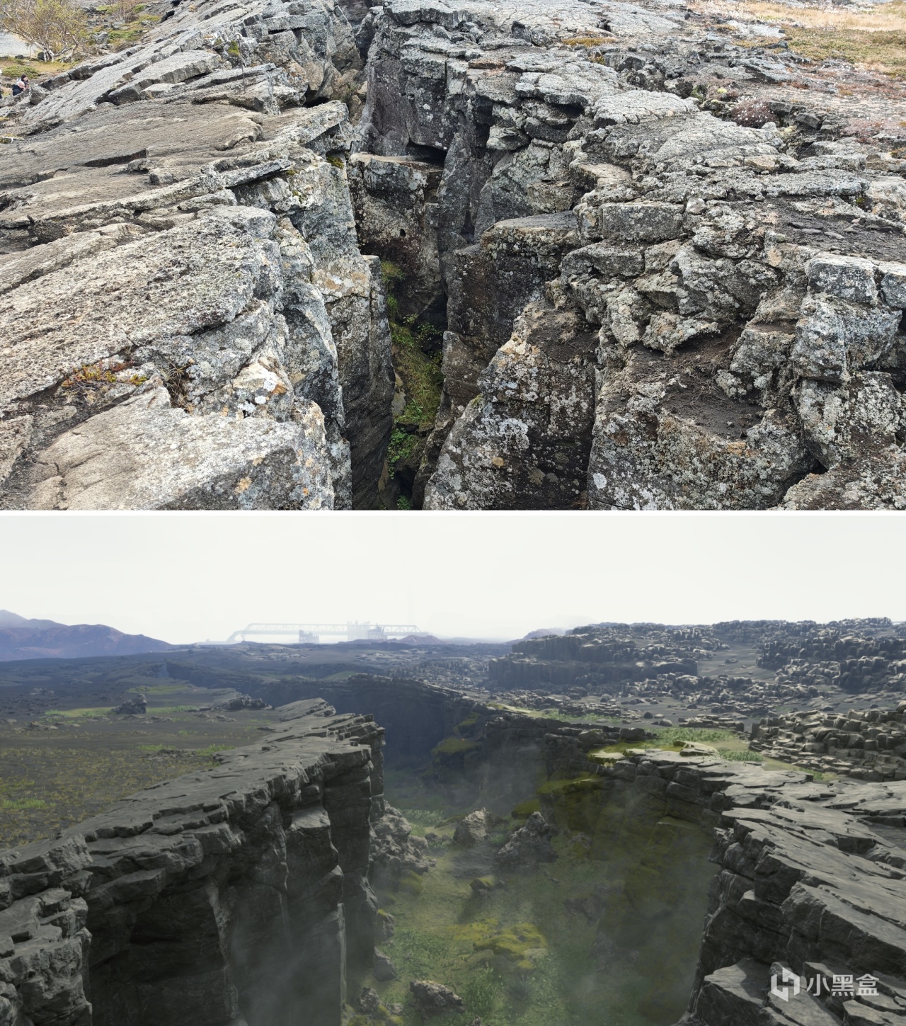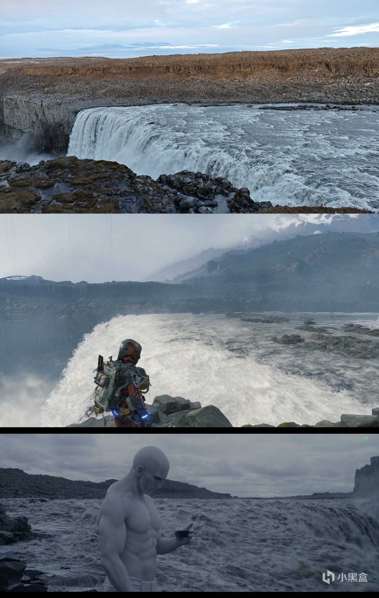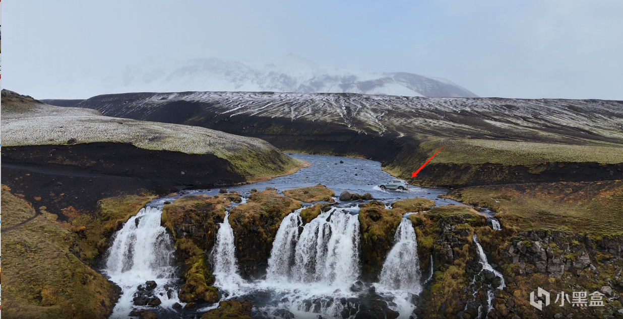 可以看到瀑布兩岸的碎石堆和遊戲內很相似