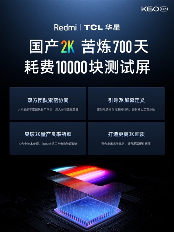 剛剛發佈的Redmi K60/K60 Pro搭載了一塊相同的2K分辨率國產屏,由小米和華星光電歷時700多天聯合研發。