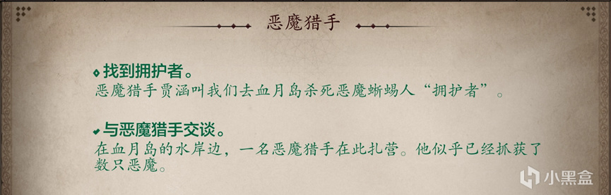 賈涵發現了逐步靠近的我們,認出我們是覺醒者後放心了許多,他自稱惡魔獵手,同時也是一位祕源大師。他願意給予我們更強大的祕源能量,但是要我們爲他做件事情,殺掉這座島上的惡魔