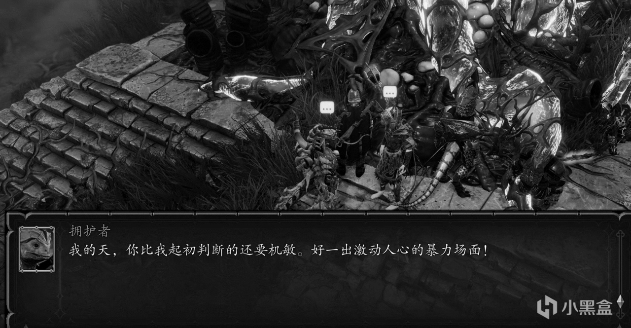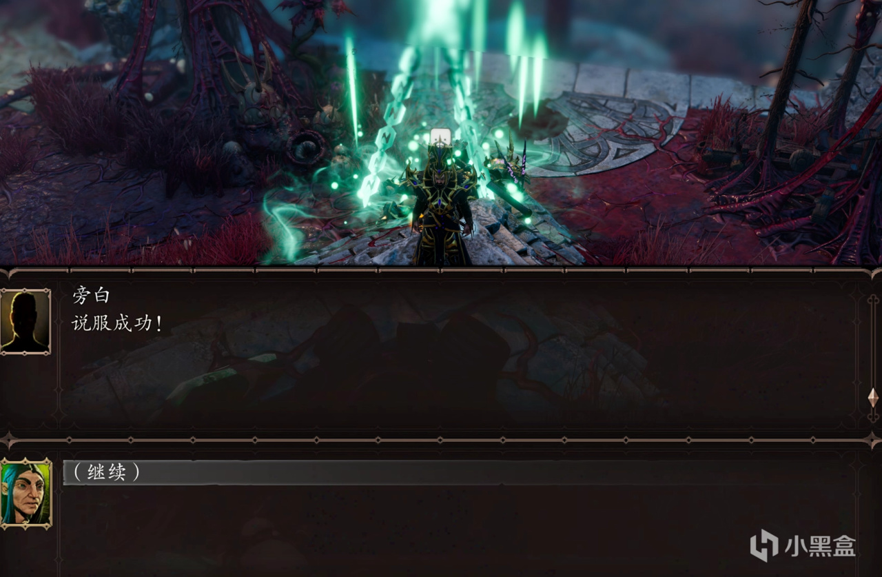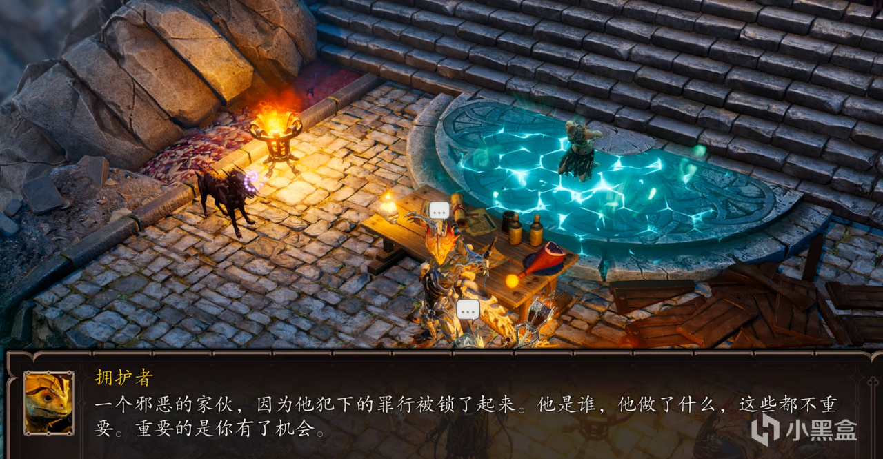 擁護者認出了我們是覺醒者,一番交流後,發覺了我們共同的敵人——黑環,擁護者提出由我們去殺掉正在古樹前佈陣的黑環,而他會給我們一個小禮物,事後還會告訴我們七神會議的位置。