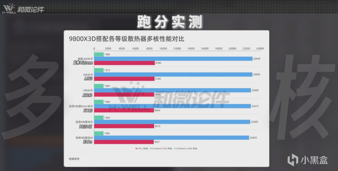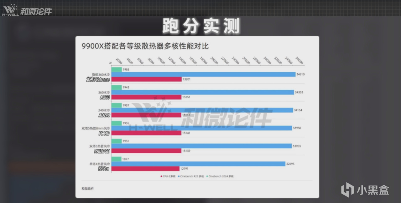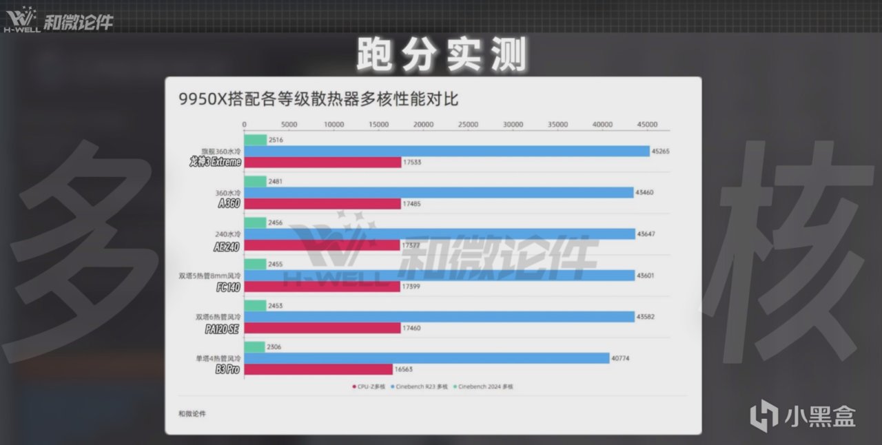 多核性能,旗艦水冷最強,比單塔風冷B3 Pro強2.1%左右。