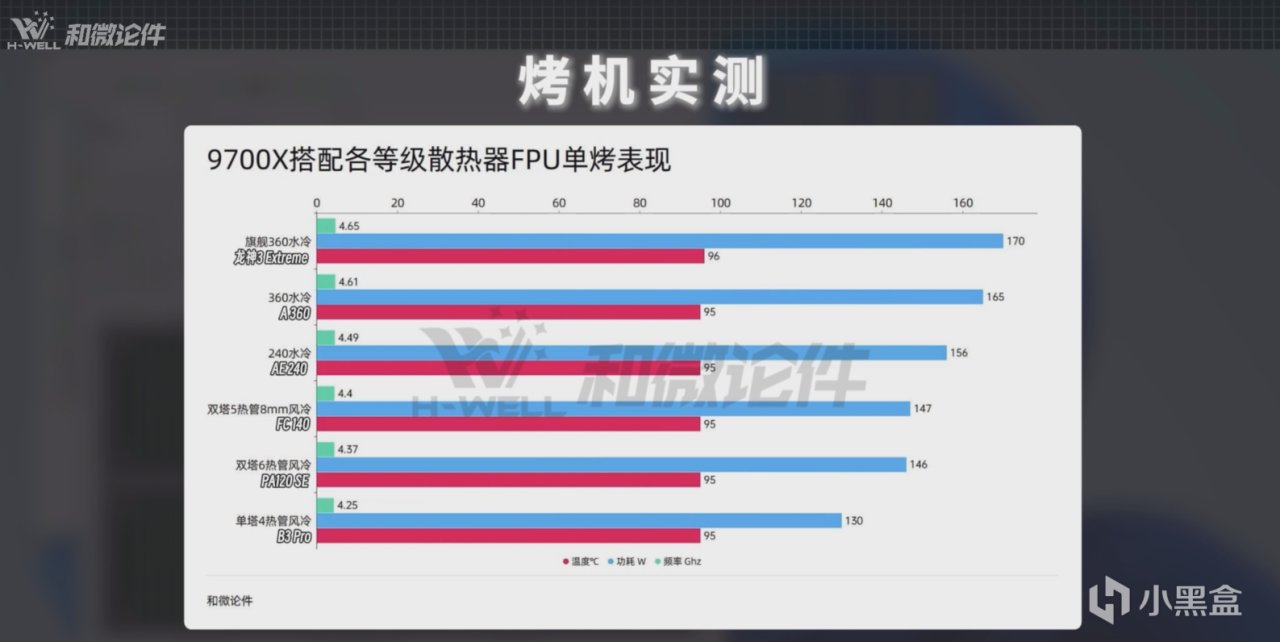 甚至還比B3 pro還要高1度,但是看功耗,旗艦360水冷是跑到了最高的170瓦,單塔風冷僅爲130瓦。