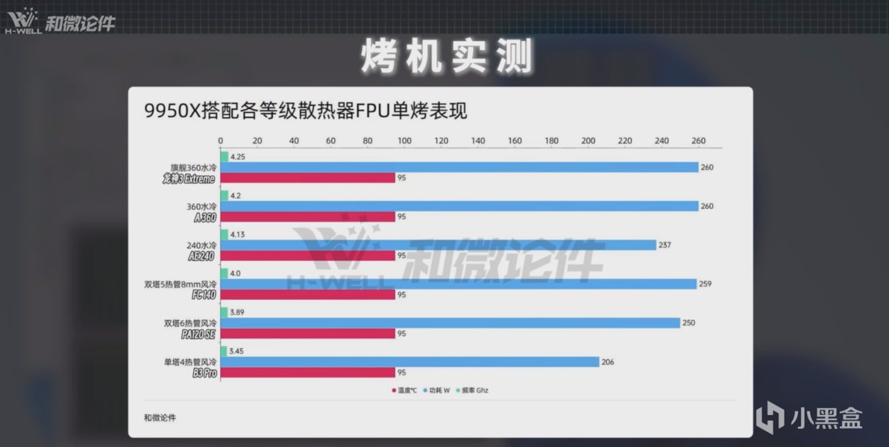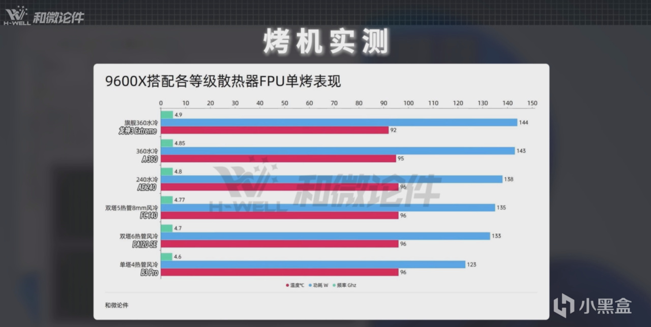 真的假的?不管了,反正就是你要做那種經常把CPU滿載的事情的話,我的建議是雙塔6熱管起步,相比旗艦360水冷,性能差距在1.5%左右,就算是你上到了360水冷,相比PA120 SE,也只能提升0.3%左右。旗艦360水冷那強大的壓制力,確實能夠榨乾9600X,但你9600X畢竟是千元級別CPU,散熱器買得太好,是不是有點倒反天罡了?