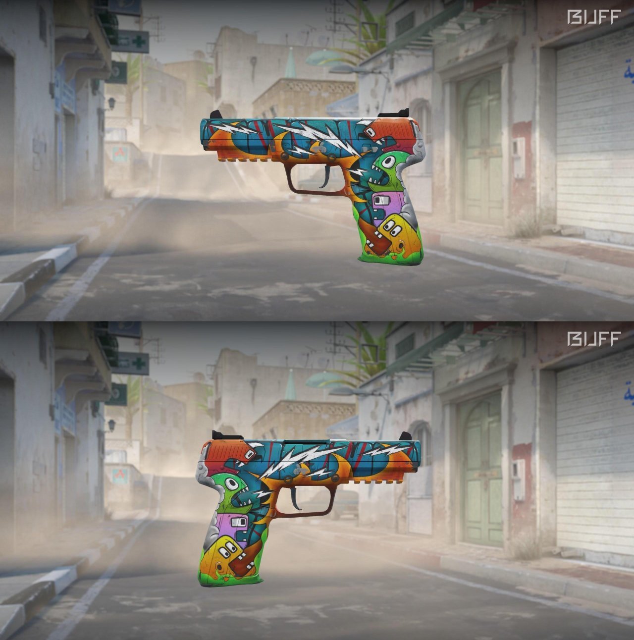 很亮眼的一款皮膚,和 cz75 的經濟有些像,局內效果還不錯,有些喫磨損,推薦略磨入手
