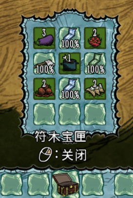 符木寶匣:可以攜帶在身上並在身上打開,有12個儲物格。一個玩家只能攜帶一個,所有玩家均能使用。