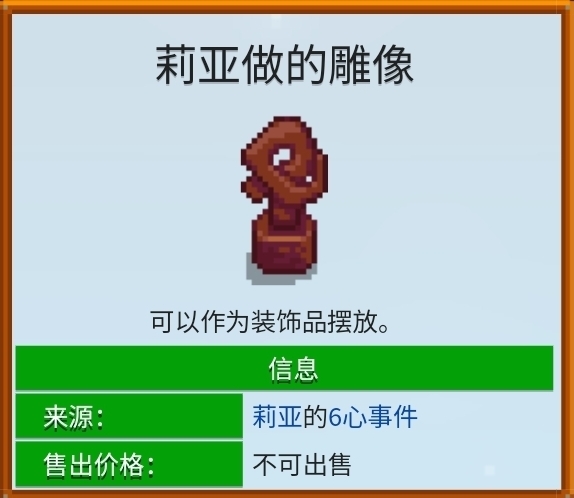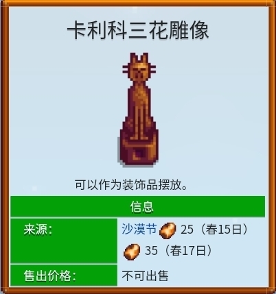 - 如果當天有村民過生日,雕像會生產一件該村民最愛的禮物,品質始終爲普通品質。