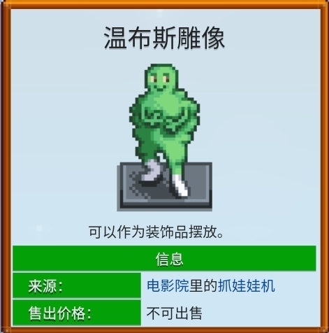 獲取方式:如果電影院在夏季期間播出了《溫布斯》,玩家在當天可以從抓娃娃機贏得該獎品。