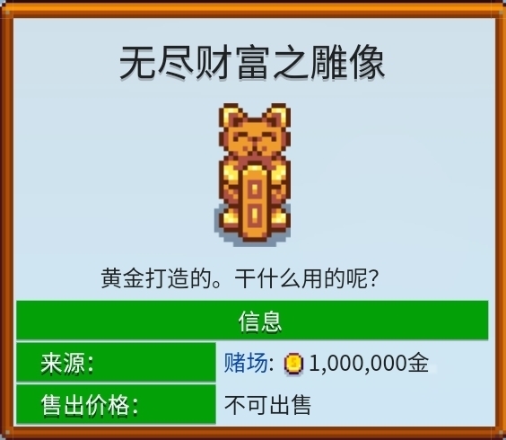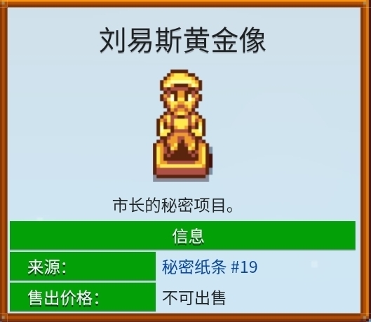 - 如果當天沒有村民過生日,雕像隨機生產鑽石、銥錠、金錠、萬象晶球四種物品之一;