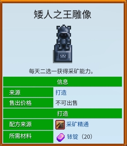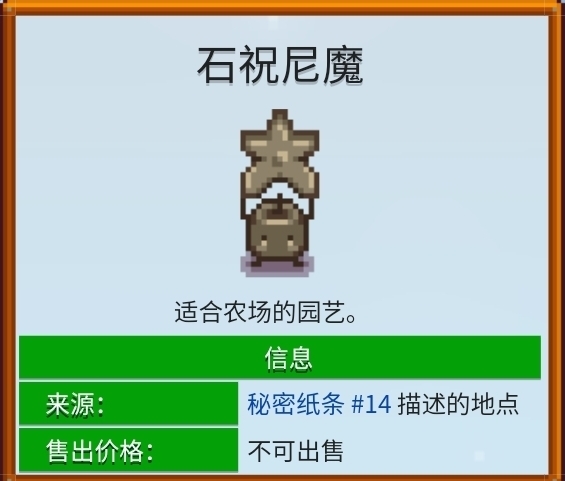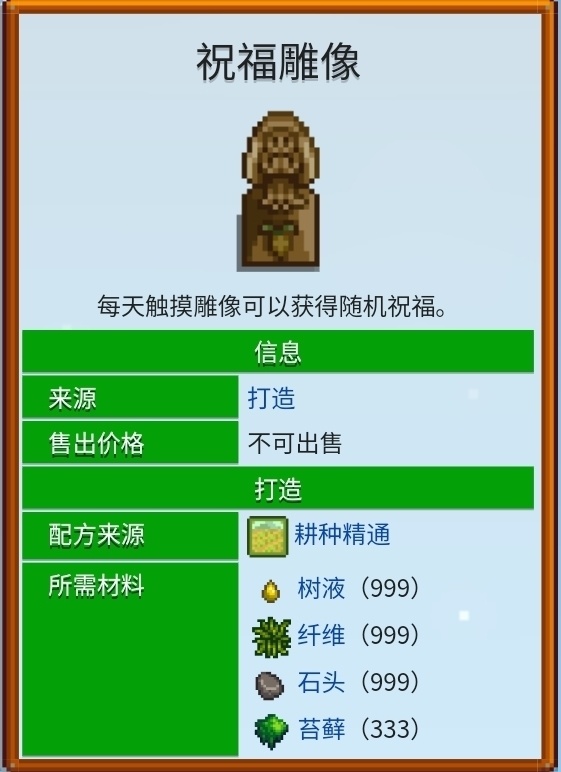 獲取方式:達到耕種精通後解鎖祝福雕像配方後,可直接製造。