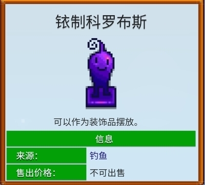 獲取方式:可以在煤礦森林最南邊靠近下水道門口中的海洋釣魚得到(15級釣魚)。