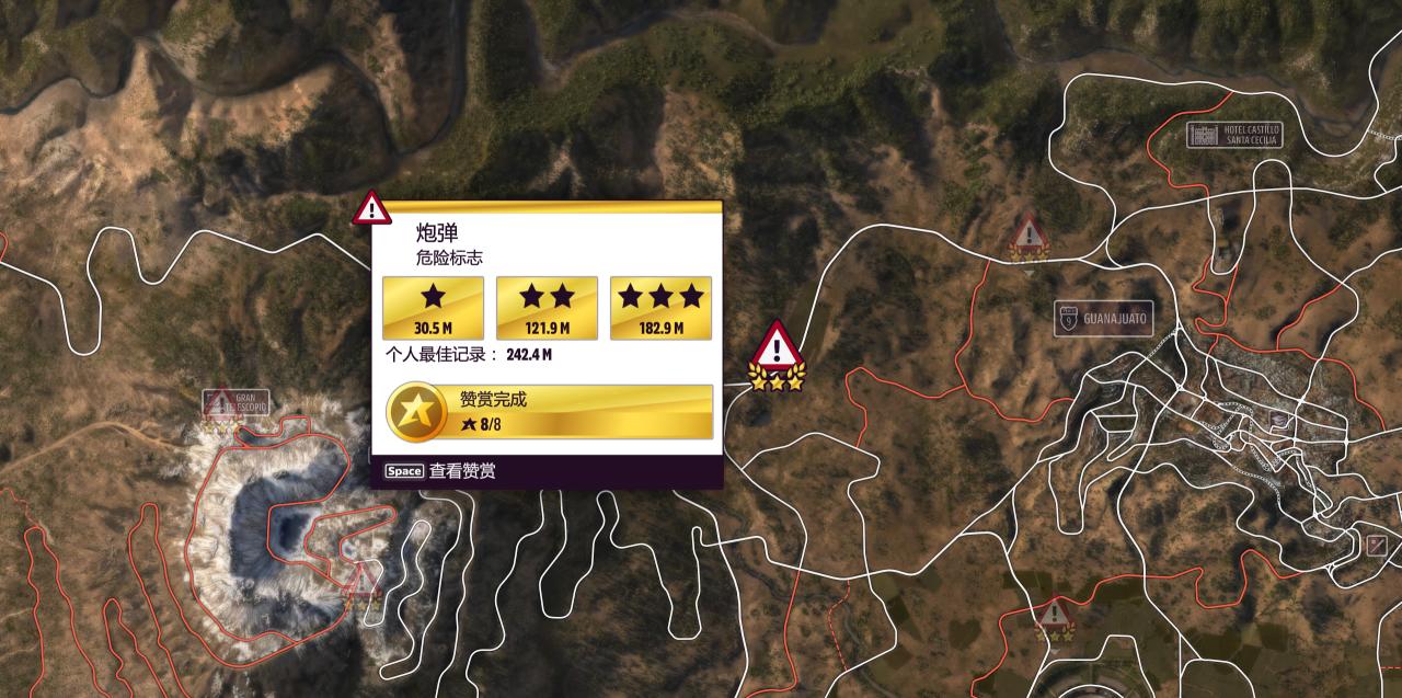 挑戰可分多次完成,建議去刷瓜納華託左側的“炮彈”危險標誌,最爲簡單。