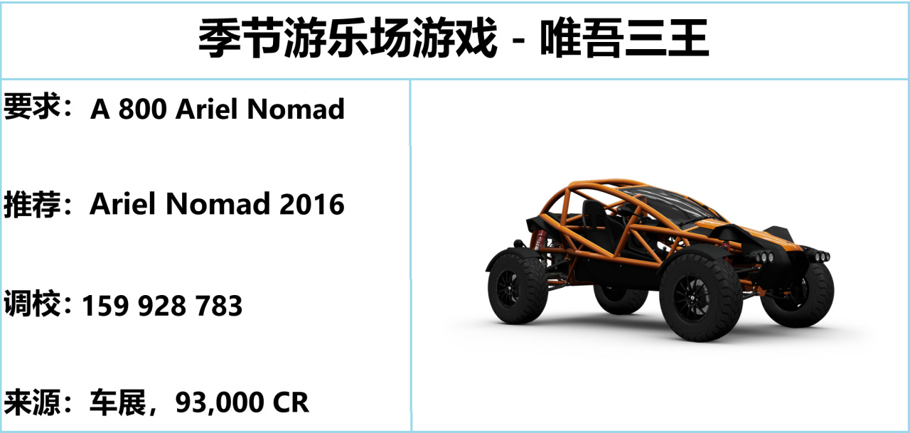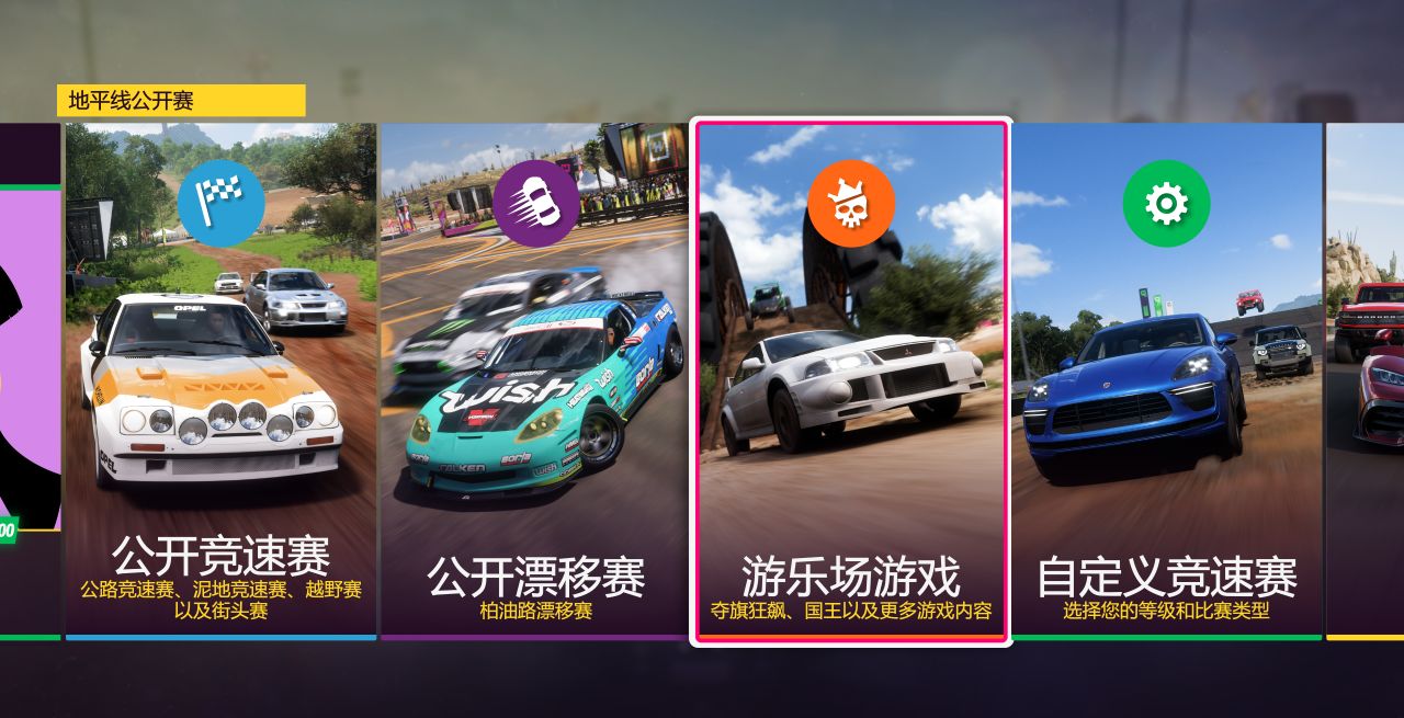 注:FH5 的終極考驗、季節遊樂場均爲三局兩勝制,後者無論輸贏均能拿到獎勵,切勿中途退賽。