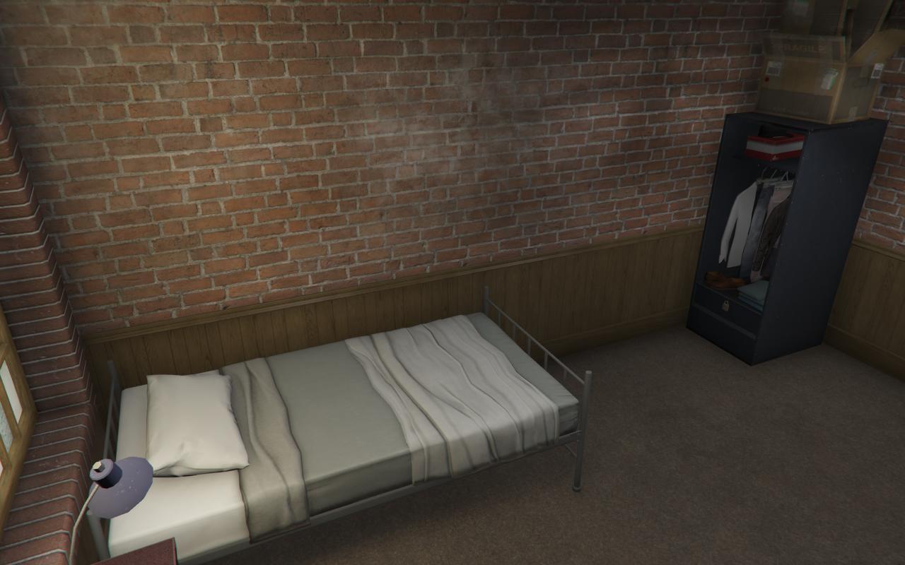 車庫內有個小彩蛋,某個角落擺放着燒焦的除蟲套裝和一把卡賓步槍,這些道具致敬了故事模式中的範傑莉卡珠寶店劫案,而服裝廠是在突襲 FIB 任務中被燒燬的。