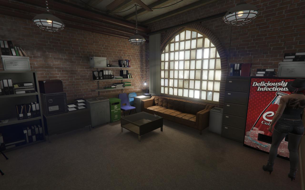 另外一間姑且算作會客廳,僅提供了沙發和一臺易可樂飲料機。進門左側的保險櫃存放服裝廠的每日收益,其數值在 1,500 到 2,000 隨機波動,最多可存儲 100,000。