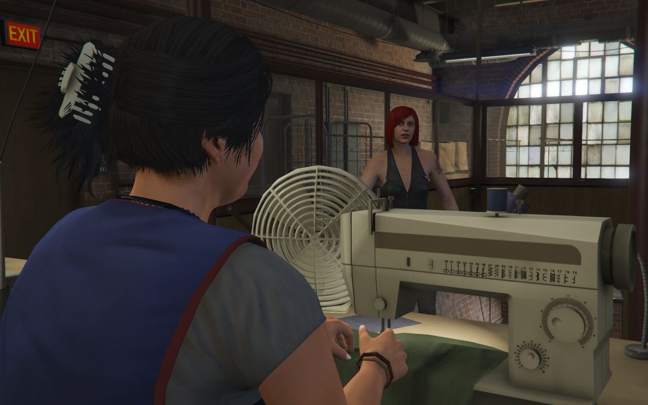 當玩家在白天時光顧服裝廠,能看到多名來自白俄羅斯的工人在使用縫紉機、加工服飾。