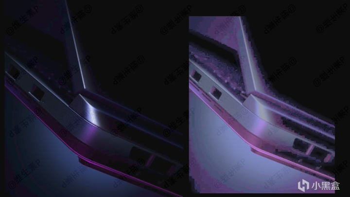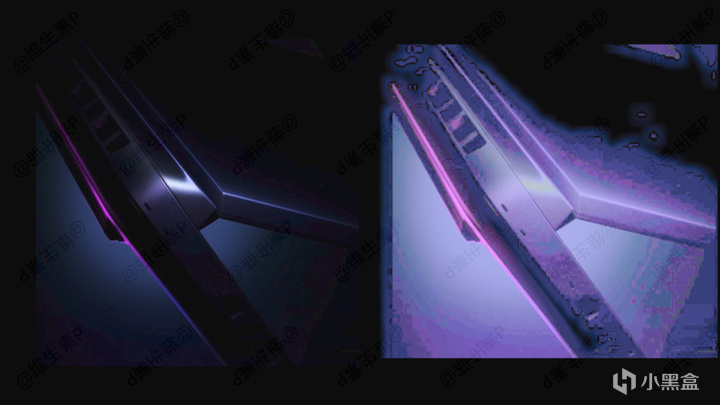最開始展示的,是新槍神尾部散熱出風口的邊角,拉高對比度和亮度之後,可以發現出風口完全變了。