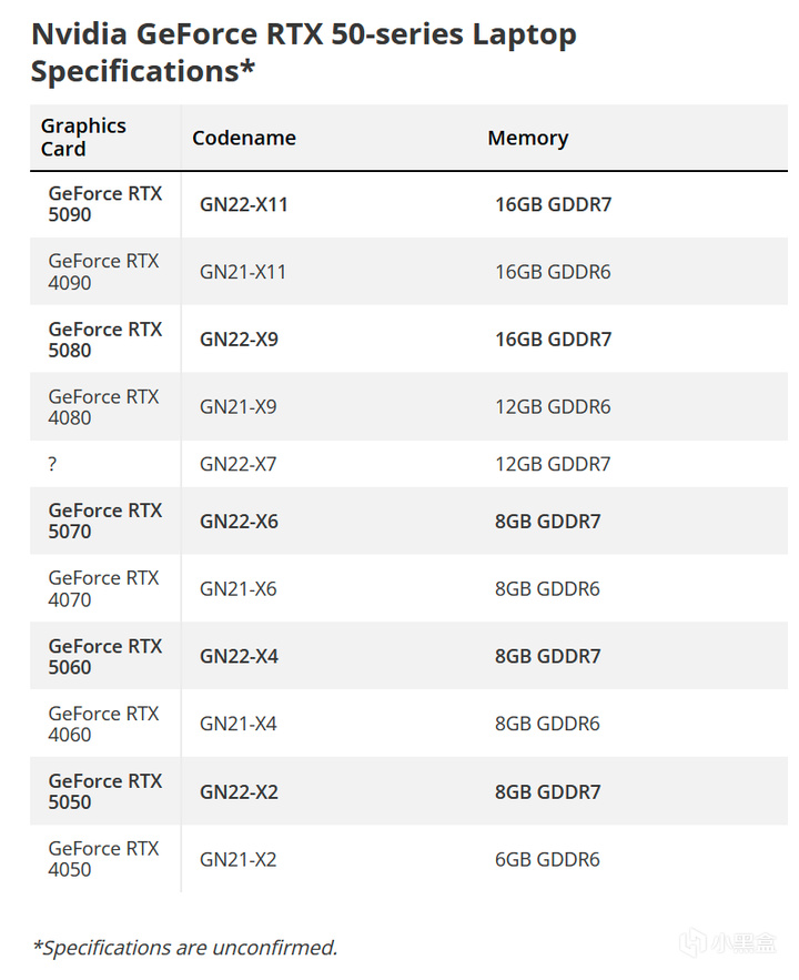 至於顯卡是不是新的 50 系,這個就不太好說了,根據外網消息 ,新的移動端應該是 5090 和 5080 先上貨,顯存大概率還是 16G ,但是升級成了 GDDR7,猜測會從核心,位寬,頻率上面給 90 和 80 細細地切一切。50系據說功耗很大,也不知道是真是假,得等實測了。