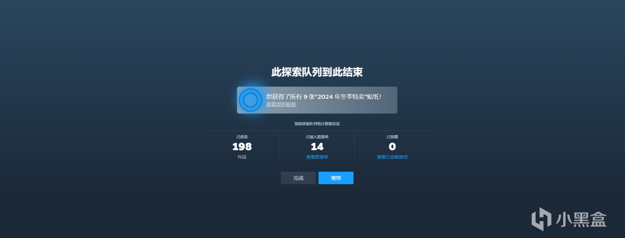 每次探索隊列都能領取3張貼紙,一共能探索3次,9張貼紙。有點卡的話,多試幾次。(steam這次有點卡。多試幾次,我好幾次沒成功,多試幾次,全部領取爲止。希望對你有所幫助。)