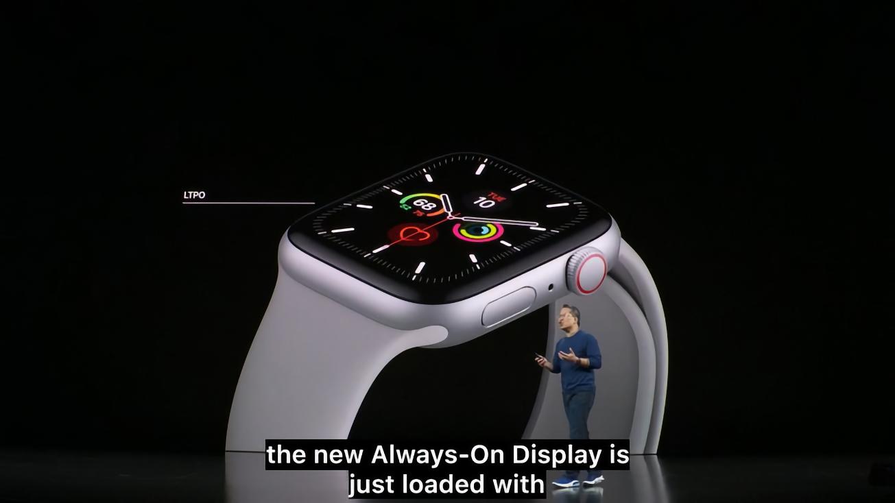 早在2018年,就有媒體曝出蘋果正在嘗試量產LTPO屏幕。1年後,蘋果發佈了Apple Watch Series 5,正式搭載了基於LTPO的OLED屏,可以將屏幕刷新率從60Hz降至1Hz,並且進行常亮顯示,待機時長可達18小時。