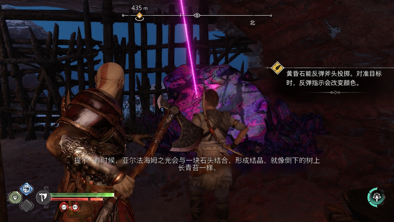 更別說這一部加了黃昏石彈反砍藤曼真的敗筆,首先部分地方玩家根本看不到斧頭的彈反軌跡,我就只能不停調角度,直到彈反軌跡變成了藍色即代表找對了。那我是不是得說這個解謎設計沒什麼必要呢,你讓我舉着斧子移來移去浪費這個時間幹嘛。