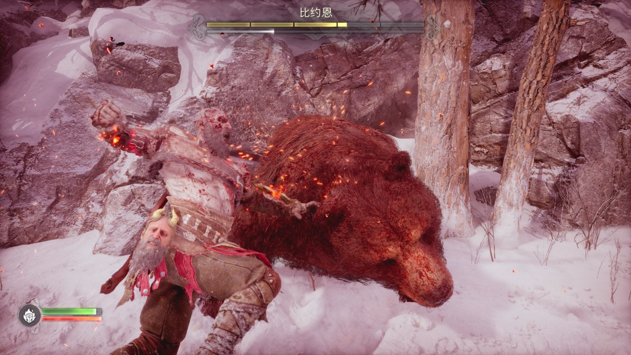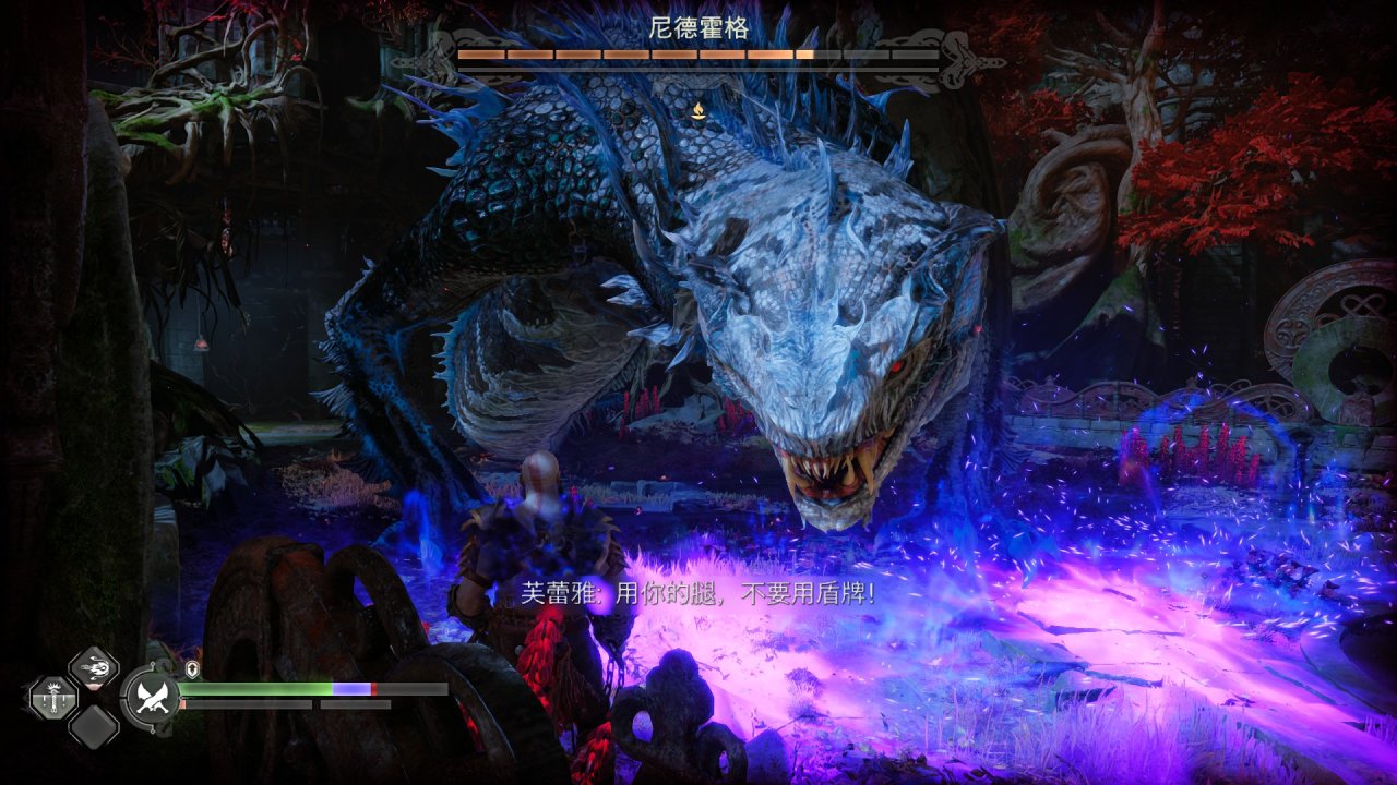 其次,每把武器的連招都不會很難,大部分都是幾下輕攻擊接一個重攻擊,或者按住輕重攻擊,又或者是每個輕重攻擊都對應帶來的特殊攻擊。這種設計讓搓招不再是一個很難的操作,極大降低了動作遊戲的門檻。而最舒服的還是遊戲的盾反,《戰神》的盾反(或者說彈反)是爲數不多我覺得特別舒服的盾反遊戲之一了,手感打磨的特別舒服,每一次的成功盾反不僅在手柄上帶來了極好的反饋,在畫面上也有很舒服的表現,而且判定也比較寬鬆,保證了萌新玩家都能有很舒服的體驗。