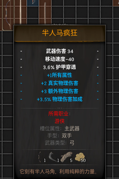 在商店中,通過升級與商人的好感度(做任務)就可以獲得一些獎勵或者開啓兌換。比如上述這把武器,每隔一段時間就會刷新。偶爾會碰到特別好的武器和裝備,這個時候就會體現到材料的價值。