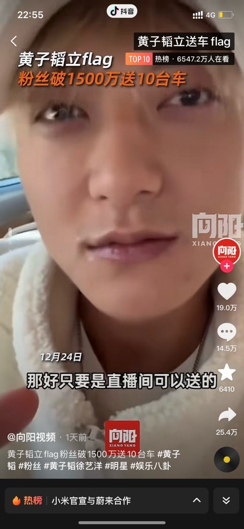 12月24號,他在直播中放言,粉絲達到1500W抽取十個幸運兒送十臺車,無論款式無論顏色,十臺車可以稱得上是出手相當闊綽。