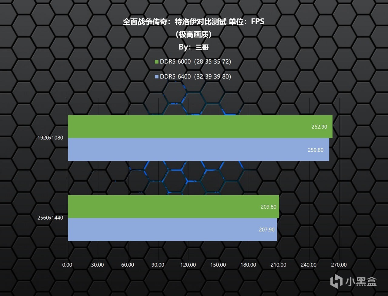 在《全面戰爭傳奇:特洛伊》測試中,DDR5 6000(28 35 35 72)相較DDR5 6400(32 39 39 80)取得了一定幅度的領先,其中在1920x1080分辨率下取得了3.1幀的領先優勢,在2560x1440分辨率下取得了1.9幀的領先優勢。