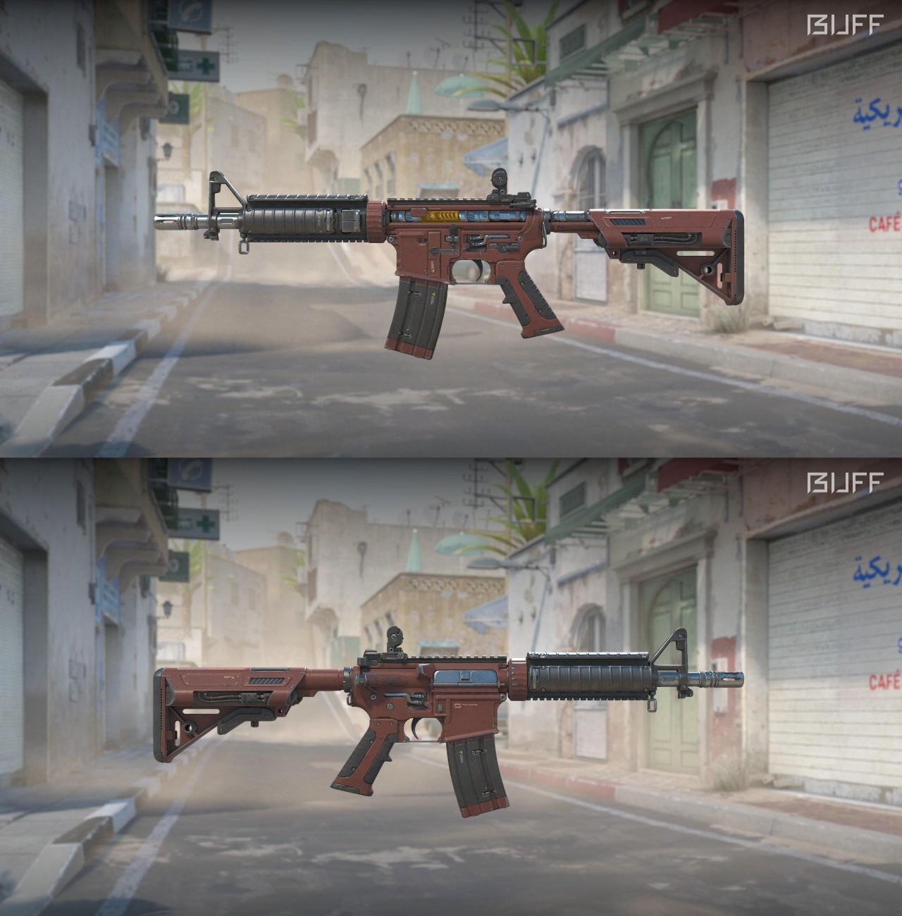 這一款槍皮設計的就比較簡樸,很純粹,由大紅色的圖塊構成,局內效果還不錯,很耐看,很適合貼印花,比較喫磨損,彈匣槍口處的紅色圖塊刮花會有些嚴重,推薦略磨入手,暗金(47)