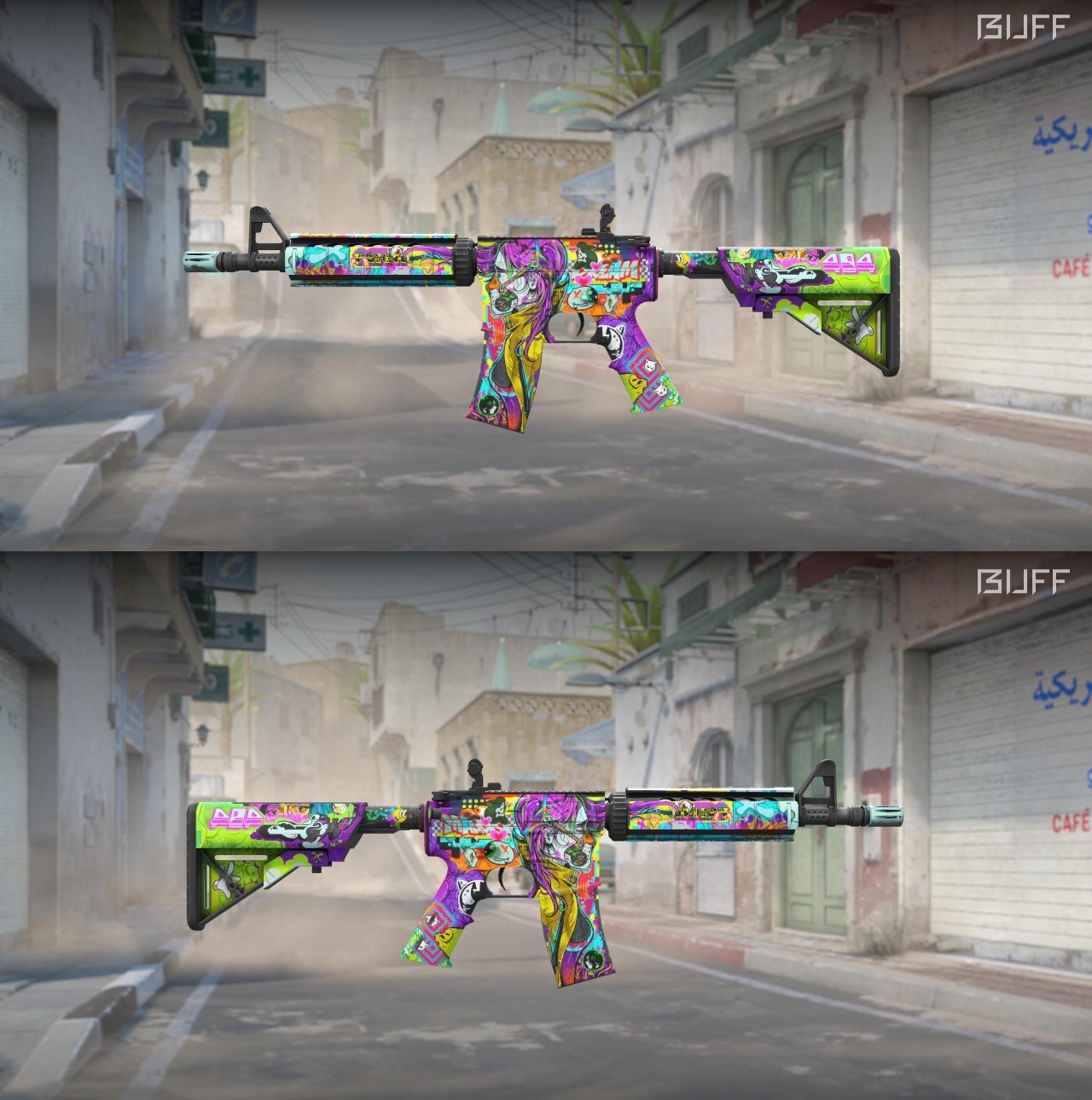 塗鴉風格的一款槍皮,色彩搭配很豐富,有點眼花繚亂了,槍身上有一位帶着類似於防毒面具的東西的少女?(也許)🤨,設計的很花裏胡哨,也富有新意,效果還算不錯,就是不知道爲什麼總讓我有一種槍沒擦乾淨的感覺•ᴗ•,比較喫磨損,推薦略磨入手