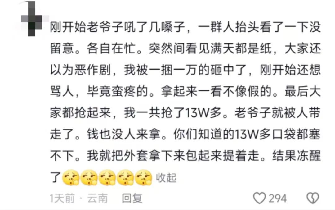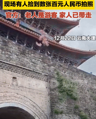 12月22日,有網民發視頻稱雲南大理古城有人在城牆上撒現金。