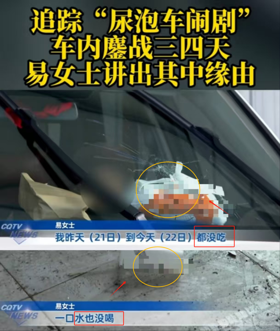 易女士在車上待了超過70個小時,喫喝拉撒都在車裏。