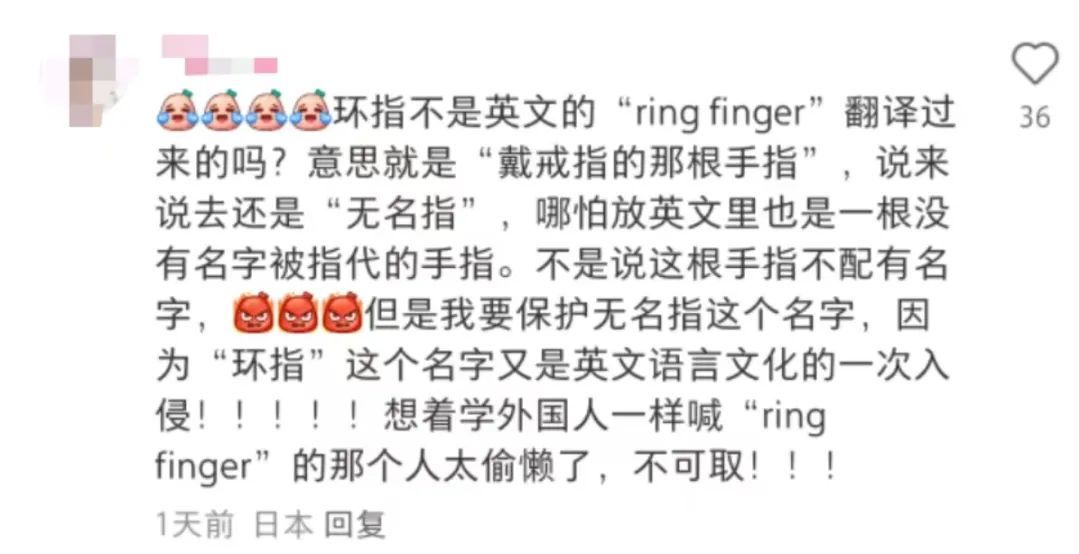 但也有人認爲“環指”就是英語“ring finger”的直譯,沒有中文的內涵。