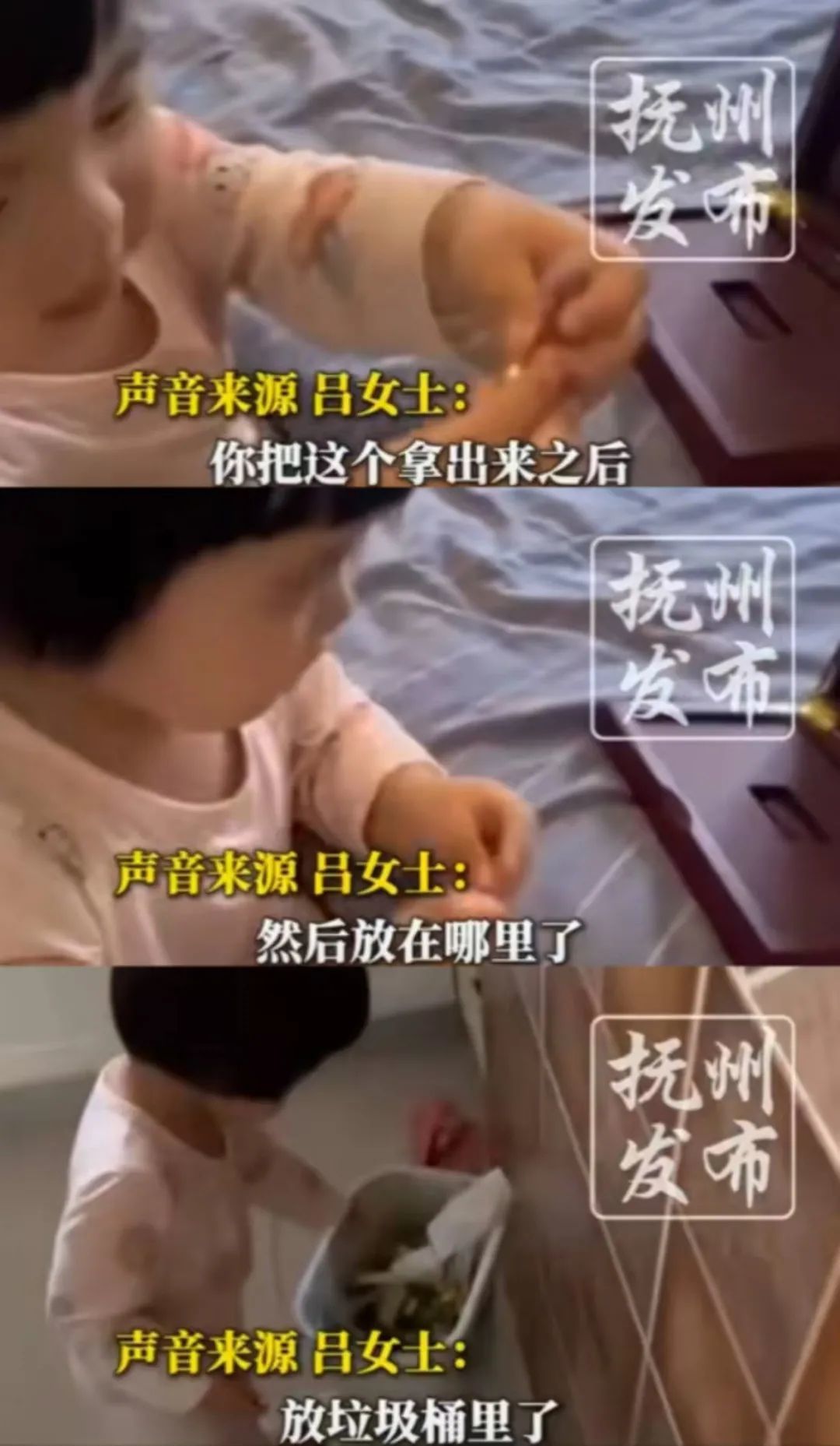反覆問了10遍以上,女兒每次都是將她領向垃圾桶。