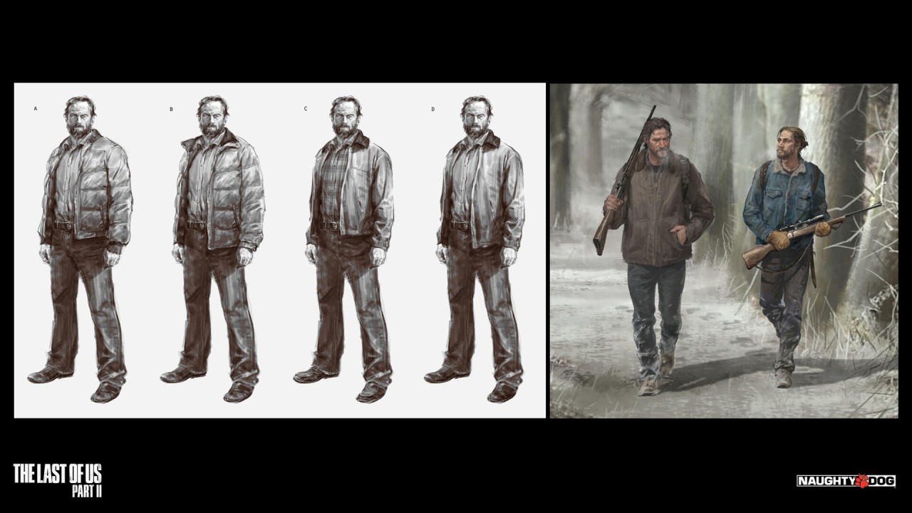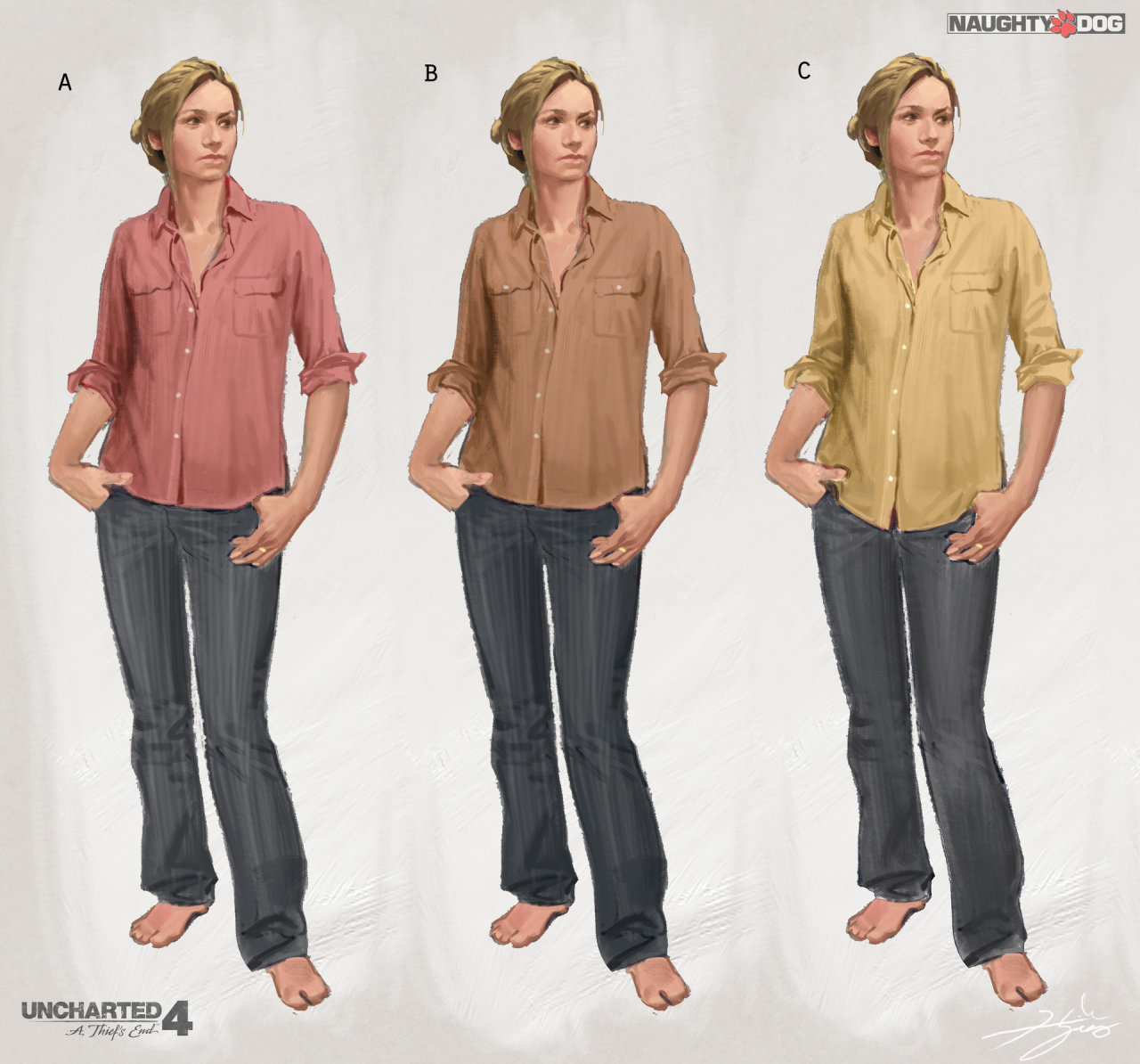 以下是他爲《神祕海域4》和《最後的生還者》畫的角色原畫。