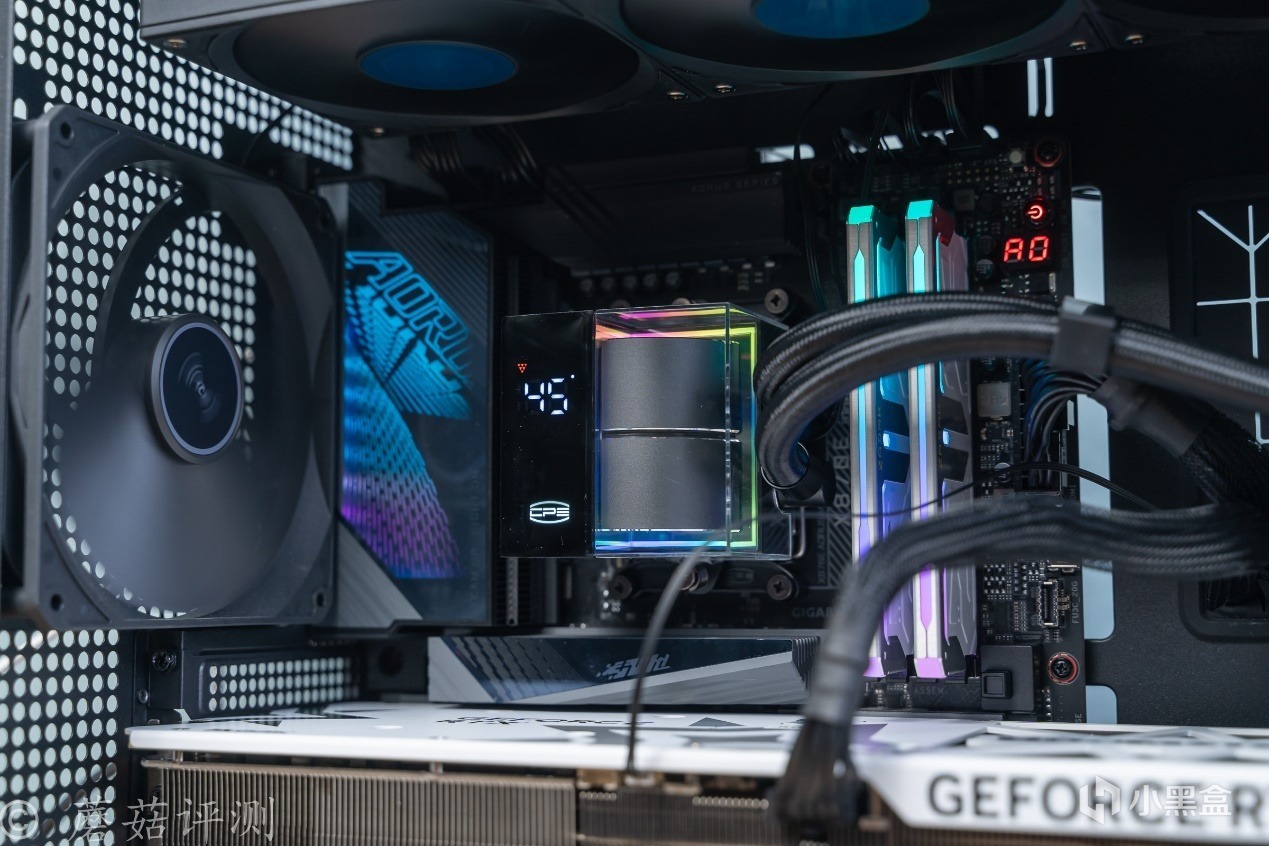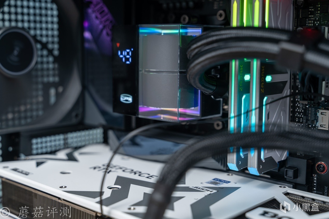 ▼另外,RGB燈帶的燈效會在水冷頭頂部的這個透明塑料蓋上反射,有點光影的感覺。
