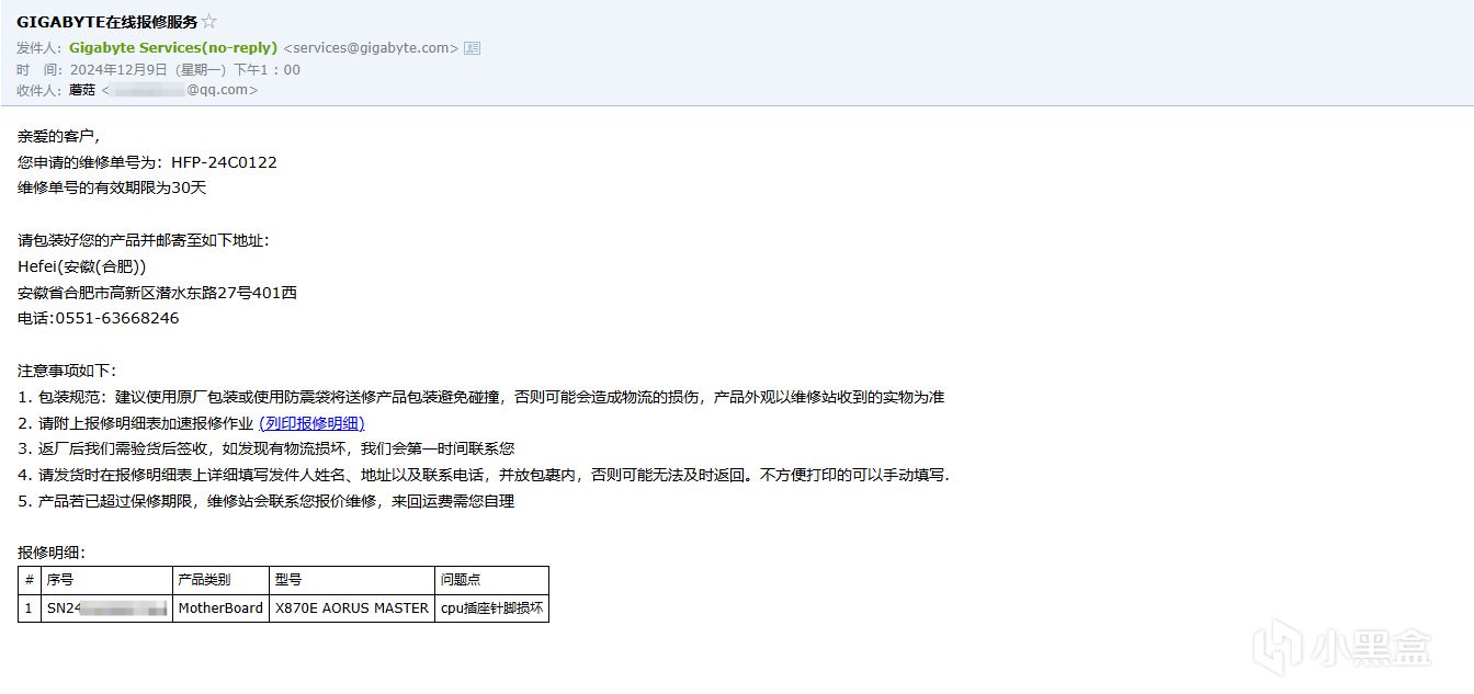 ▼另外在郵箱裏會有一封技嘉的郵件,下面的注意事項裏有個“報修明細”,大家可以把這個明細打印下來,聽說可以提高維修速度。