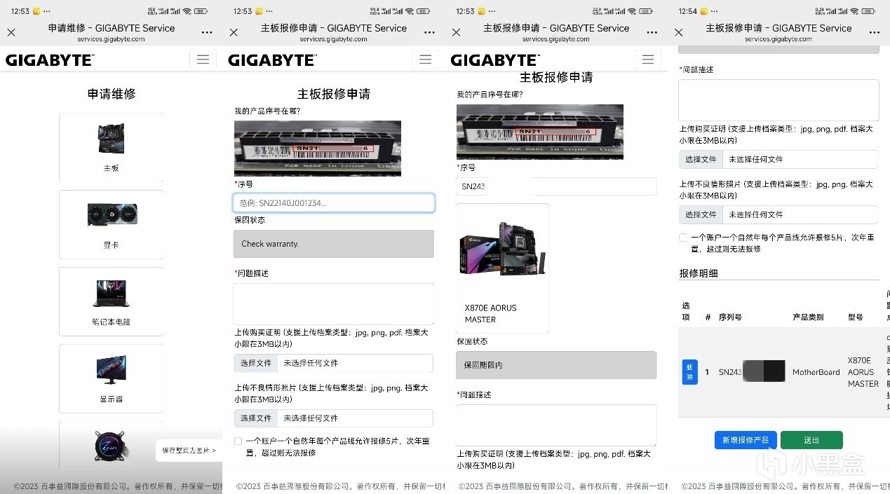 ▼點擊“申請維修”之後,輸入主板的SN碼,輸入“問題描述”,就可以輕鬆創建維修條目,感覺有點像OA申請的感覺。另外,一個賬戶、一個自然年、每個產品線允許報修5片,這個需要多注意下。
