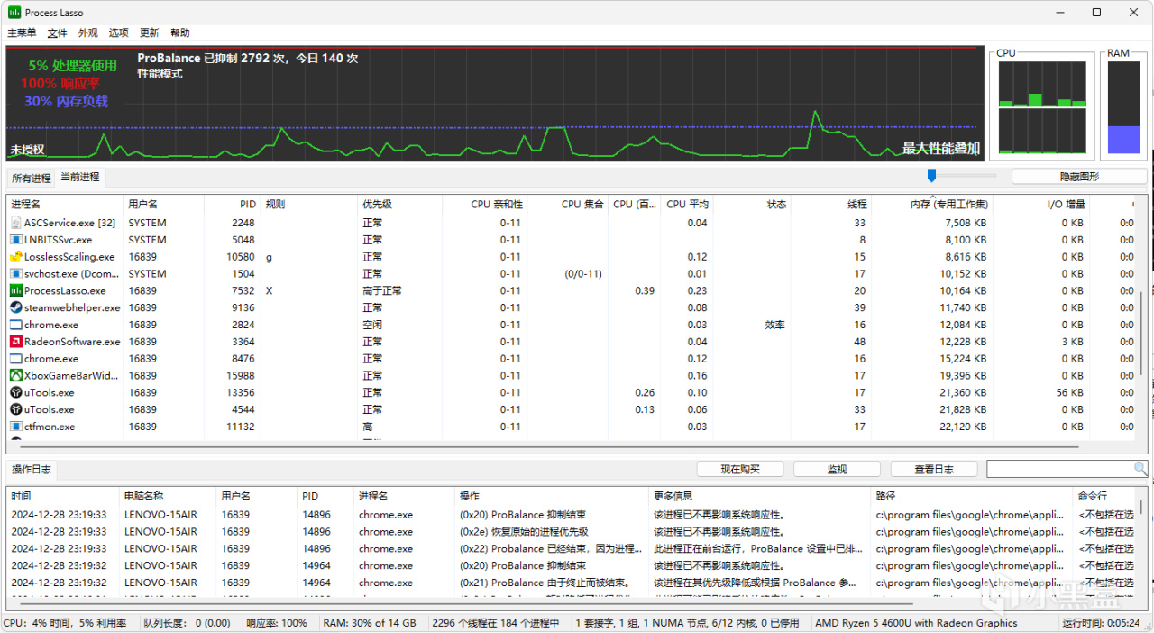 更改系統資源調度策略,使用Process Lasso軟件改善系統流暢度和減少遊戲卡頓。