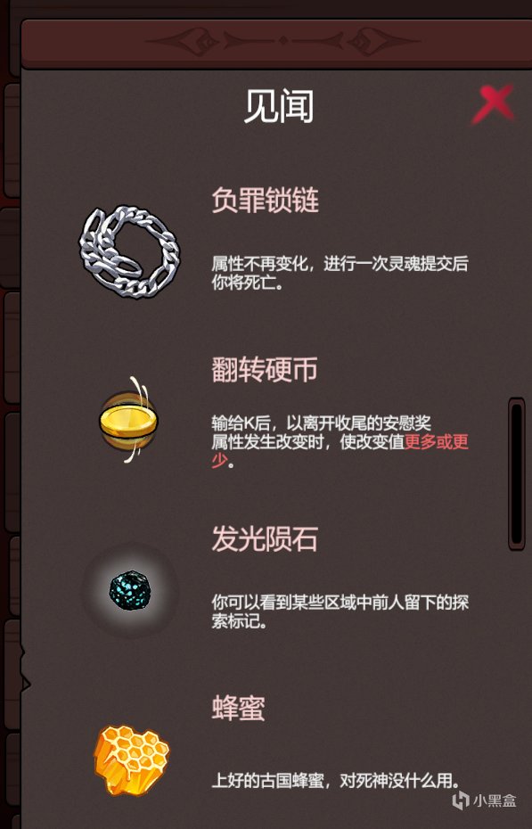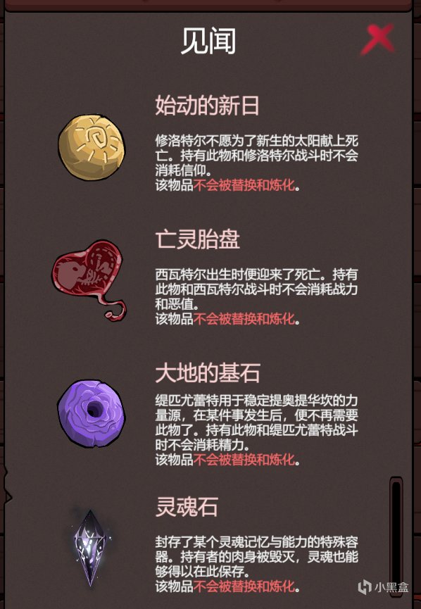 神諭與物品上限注意:神諭最多5個,物品也是最多5個,神諭超過5個的可能性較小(大部分20年之後就沒有了),但是物品拿到超過5個很容易(尤其是對三大死神特攻全到手之後),一旦超過5個下一個物品就會自動頂替第一個可以被替換/煉化的物品!後期本冰曾沒注意用黃金頂替了【發光隕石】(因爲一週目後基本可以直接先不走死神塔迷宮而是收集兩大特攻物品,然後直接進入死神塔拿到【始動的新日】之後再順着發光隕石去塔頂祭壇後直接選擇復仇幹掉三大boss走真結局)