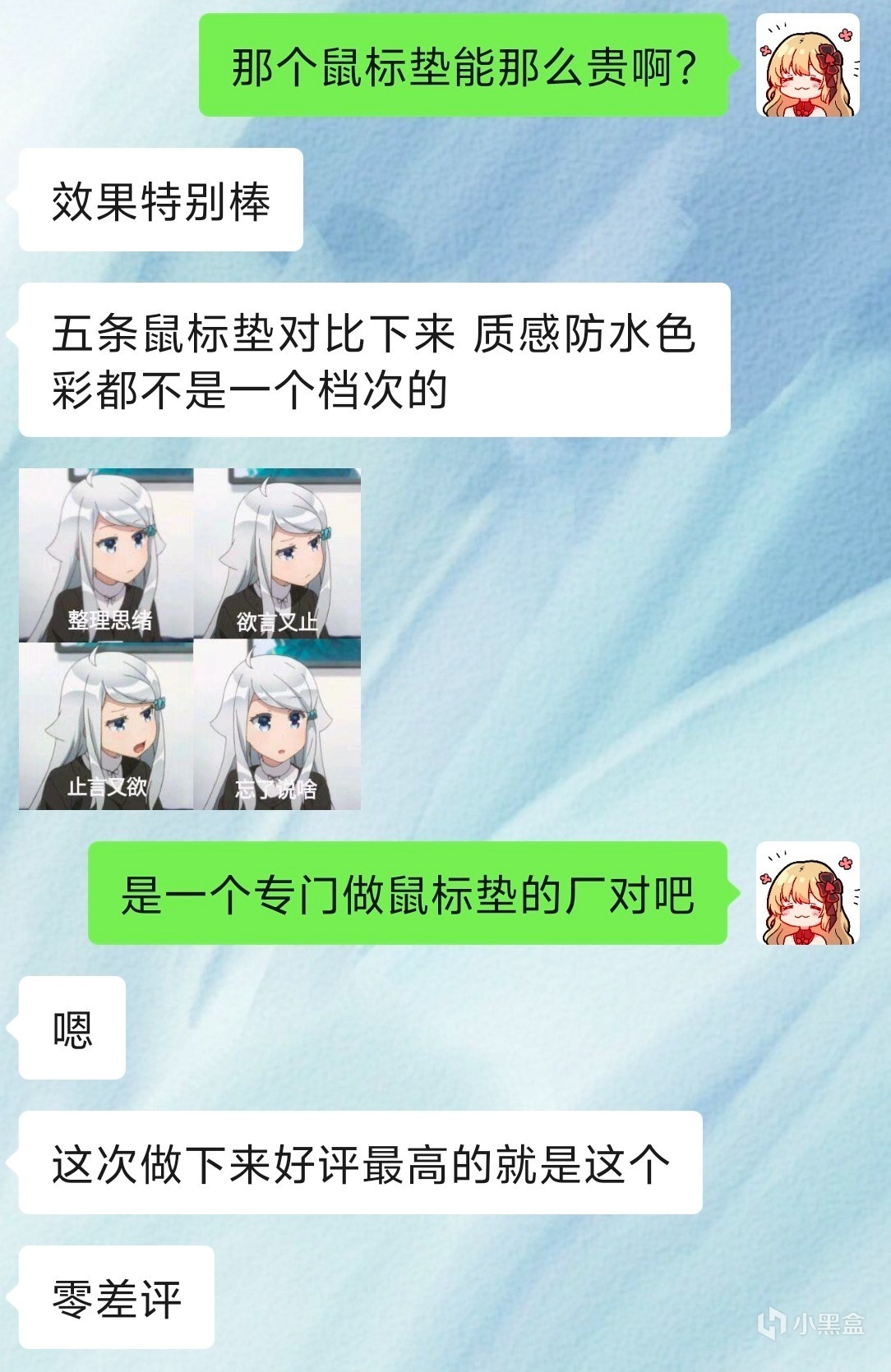 小道消息,鼠鼠自己說的。之前皎月衆籌鼠標墊成本很高,單論鼠標墊沒控制好預算,還虧了一點。是找一個專門做鼠標墊的廠做的。(很多黑盒外設博主應該都有和那個廠商合作過)
