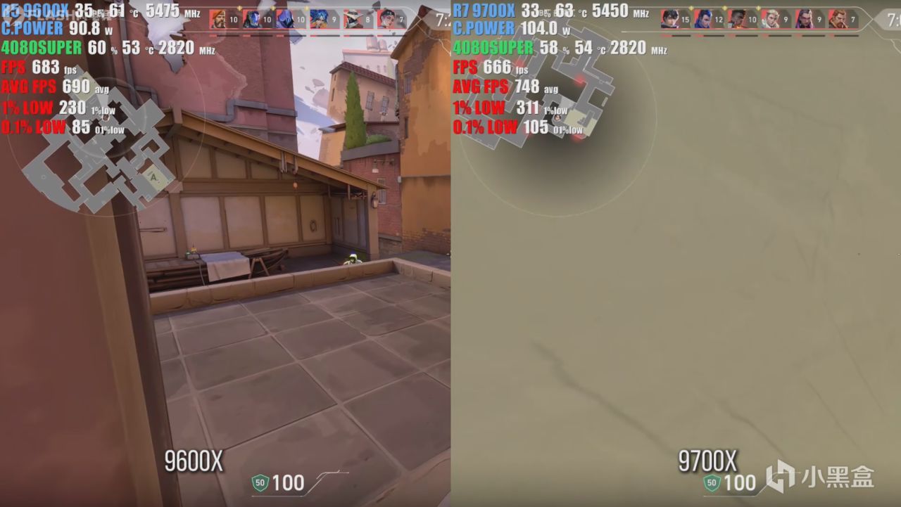 包括《無畏契約》也是類似,9700X有比較明顯的領先,平均幀高32幀,領先4.65%,LOW幀高25幀,領先9.72%;