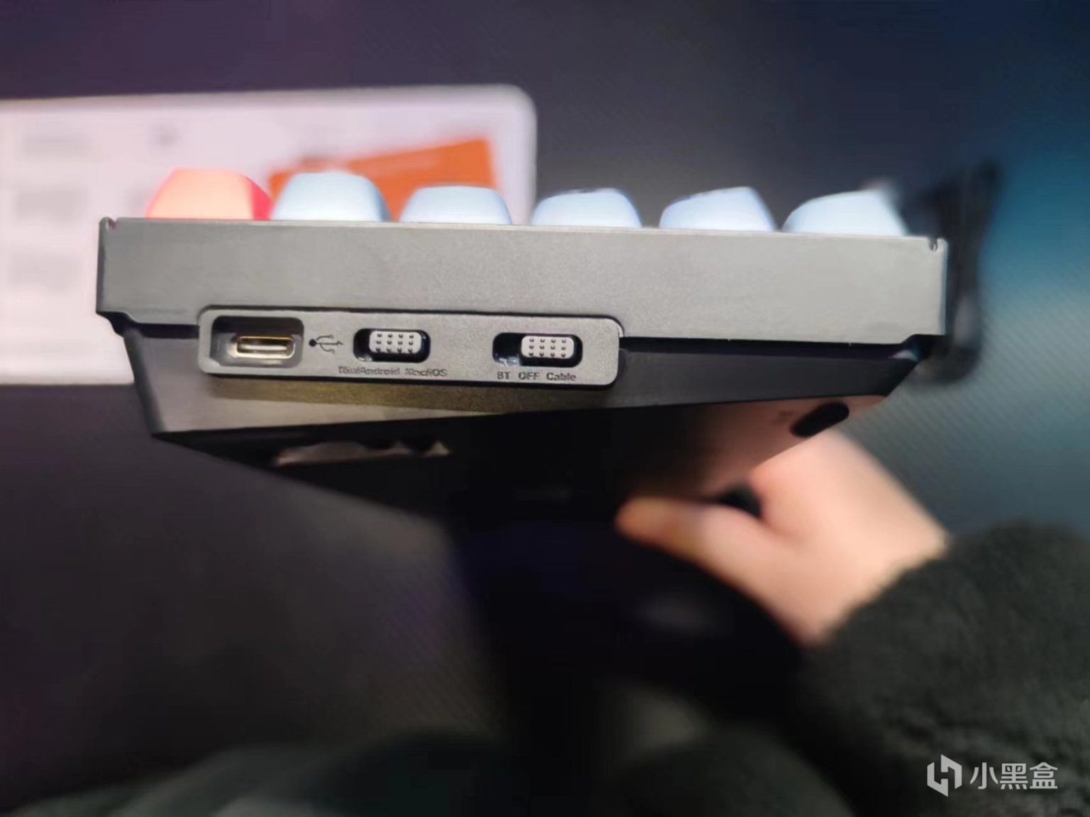 這把辦公鍵盤把接口win/mac切換開關都放在了側面,完全可以做到盲按,這個相比很多鍵盤把接口這些做在了背面或者前面要方便很多 ,而且線材是L頭的哦。