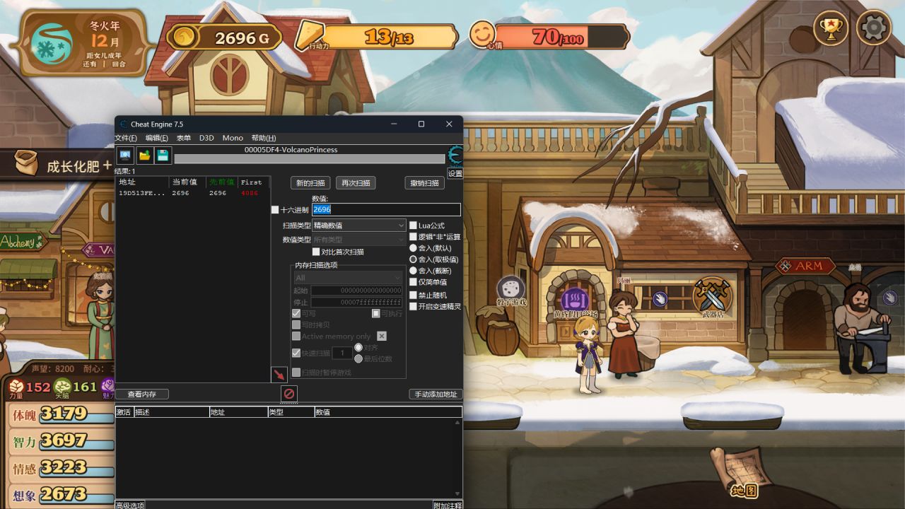 先打開ce,然後點擊左上角類似電腦的圖標選擇需要改變數值的程序。以《火山的女兒》改變金幣數值爲例(絕對不是因爲刷化肥被拱而懷恨在心)