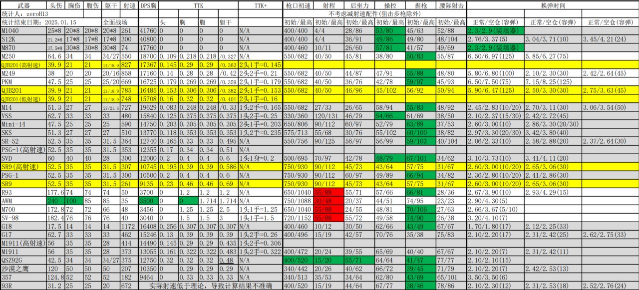 S3賽季全面戰場霰彈槍、輕機槍、精確射手步槍、狙擊步槍、手槍數據
