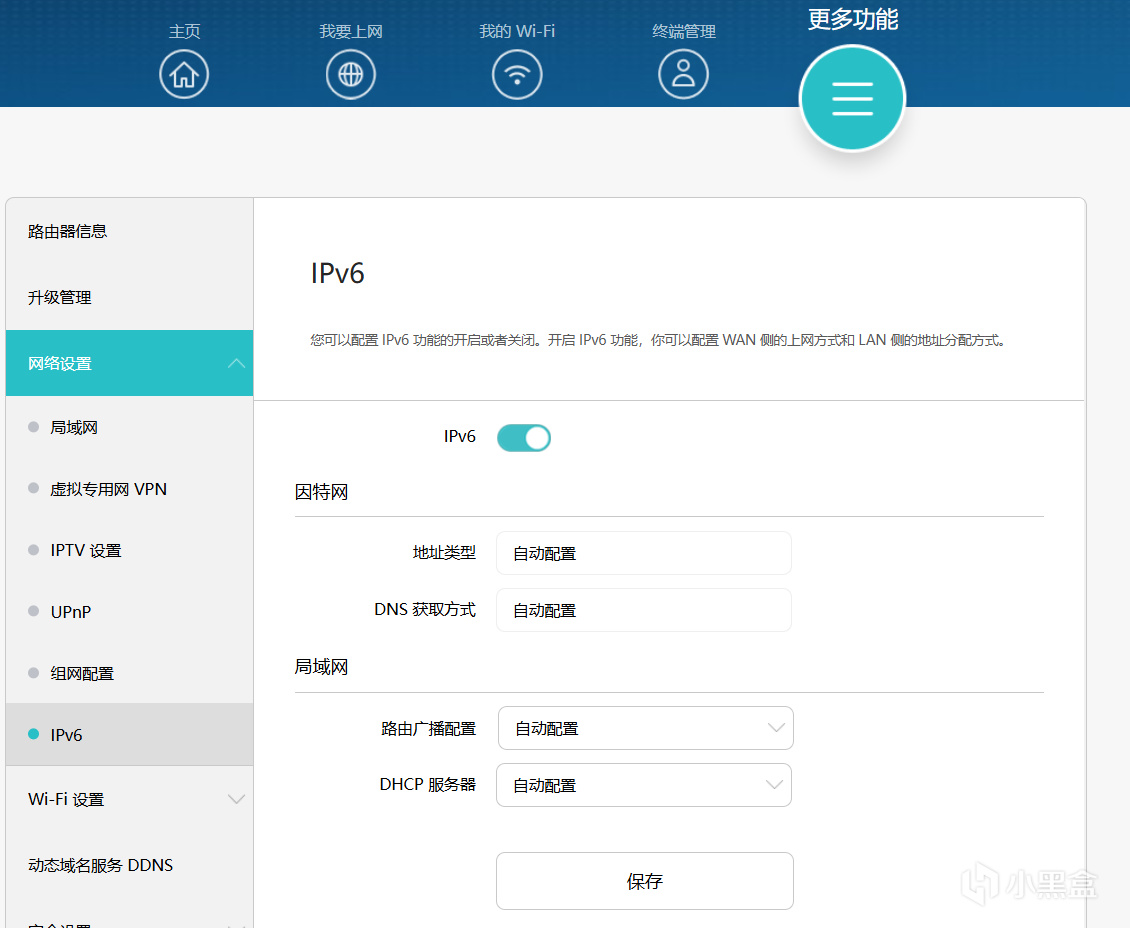 找到更多功能雙擊進去——網絡配置——開啓ipv6,下列全部選自動配置