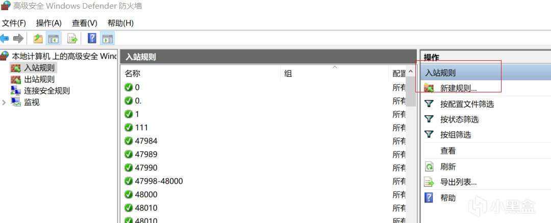 1). 配置電腦的防火牆的入站規則和出站規則,將圖1中的端口都添加進入允許