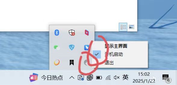 打開皎月連的應用程序後,皎月連會出現在右下角——右鍵皎月連圖標——開啓開機啓動
